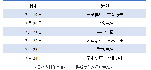 暑期學(xué)校采用線下和線上相結(jié)合的方式組織教學(xué)。預(yù)計(jì)日程安排如下: