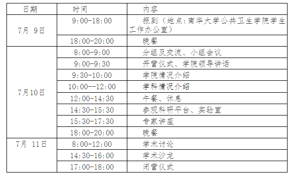 為了促進全國各高校公共衛(wèi)生學(xué)相關(guān)專業(yè)優(yōu)秀大學(xué)生的互動與交流,培養(yǎng)大學(xué)生從事科學(xué)研究的興趣,學(xué)院將于2021年7月9日至11日在衡陽舉辦“南華大學(xué)公共衛(wèi)生學(xué)院2021年全國優(yōu)秀大學(xué)生暑假夏令營”(以下簡稱為夏令營)。夏令營期間將安排學(xué)科介紹、學(xué)員與導(dǎo)師交流、參觀校園、實驗室等活動。夏令營采取線上與線下相結(jié)合的形式進行。對有意報考我院學(xué)生,夏令營過程中獲得優(yōu)秀學(xué)員資格者,只要統(tǒng)考初試成績達到國家分?jǐn)?shù)線或獲得碩士研究生推免資格,同等條件下優(yōu)先錄取。