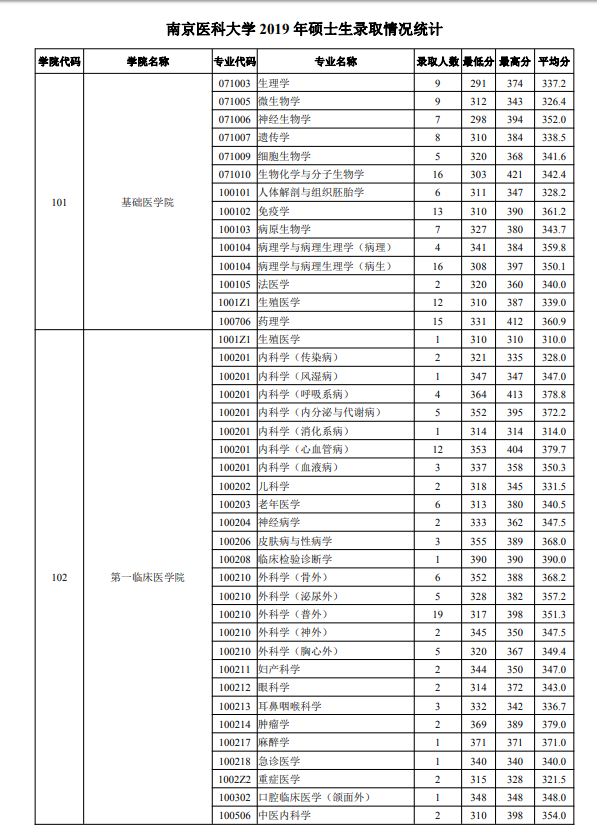 參加21考研的你,目標(biāo)院校選好了嗎?小編在南京醫(yī)科大學(xué)的研究生院官網(wǎng)上查閱到了“南京醫(yī)科大學(xué)2019年錄取碩士研究生分專業(yè)分?jǐn)?shù)情況”,考慮到現(xiàn)在正是大家確定目標(biāo)院校的階段,為幫助各位考生了解,醫(yī)學(xué)教育網(wǎng)小編整理了如下內(nèi)容: