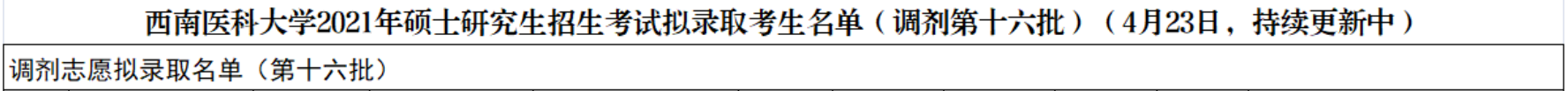 為幫助各位考生及時(shí)了解錄取結(jié)果,醫(yī)學(xué)教育網(wǎng)小編在西南醫(yī)科大學(xué)研究生院的官網(wǎng)上查找到了“西南醫(yī)科大學(xué)2021年碩士研究生招生考試擬錄取考生名單(調(diào)劑第十六批)(4月23日,持續(xù)更新中)”通知內(nèi)容如下,請同學(xué)仔細(xì)查看!有問題請及時(shí)聯(lián)系學(xué)校!