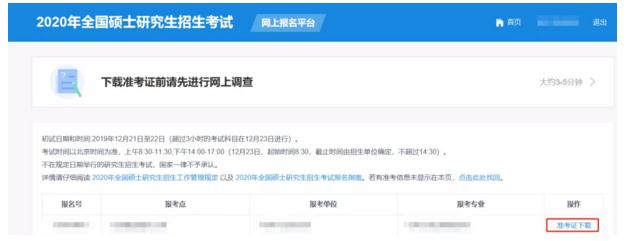 進入研招網報平臺首頁后,如招生單位已上傳準考證,你將看到下載鏈接(就是下圖右下角紅框-參考去年流程)。