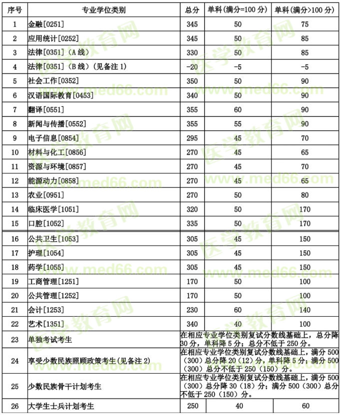 蘭州大學(xué)2020年碩士研究生招生復(fù)試分數(shù)線(專業(yè)學(xué)位)