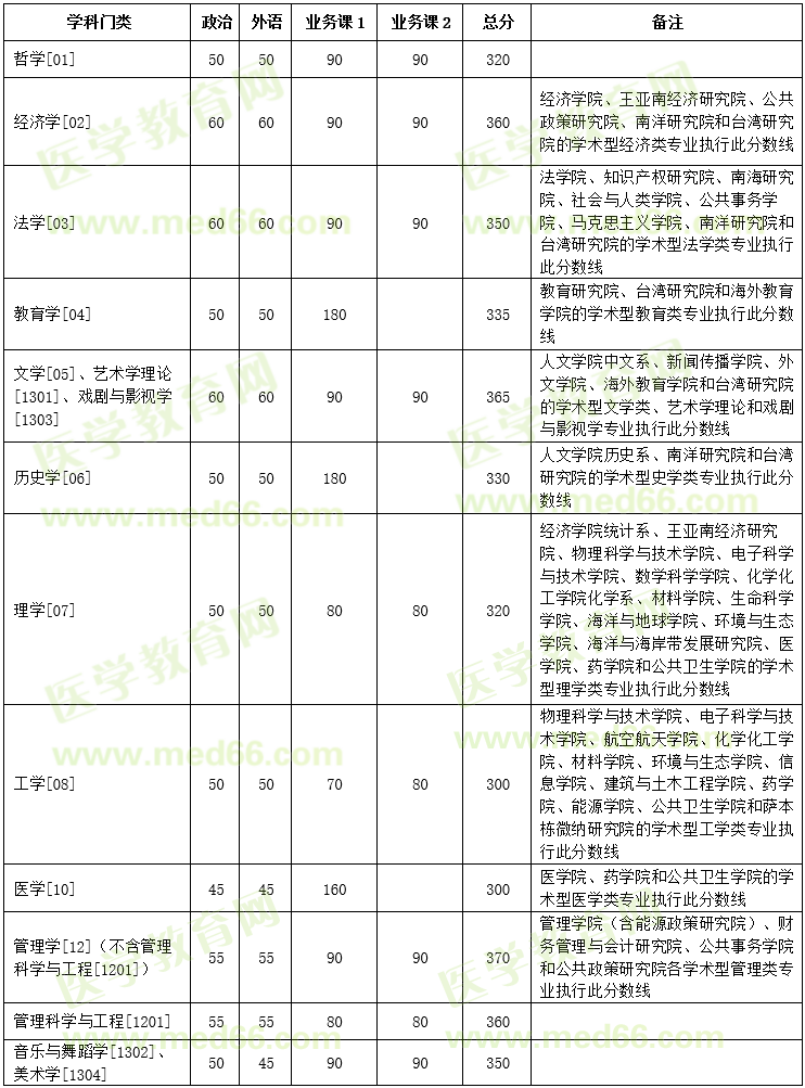 1.以上分?jǐn)?shù)線為考生進(jìn)入廈門(mén)大學(xué)復(fù)試的初試成績(jī)基本要求,各學(xué)院(研究院)可在不低于學(xué)校復(fù)試基本要求的基礎(chǔ)上,根據(jù)生源和計(jì)劃情況確定本學(xué)院(研究院)各專業(yè)考生進(jìn)入復(fù)試的初試成績(jī)要求。