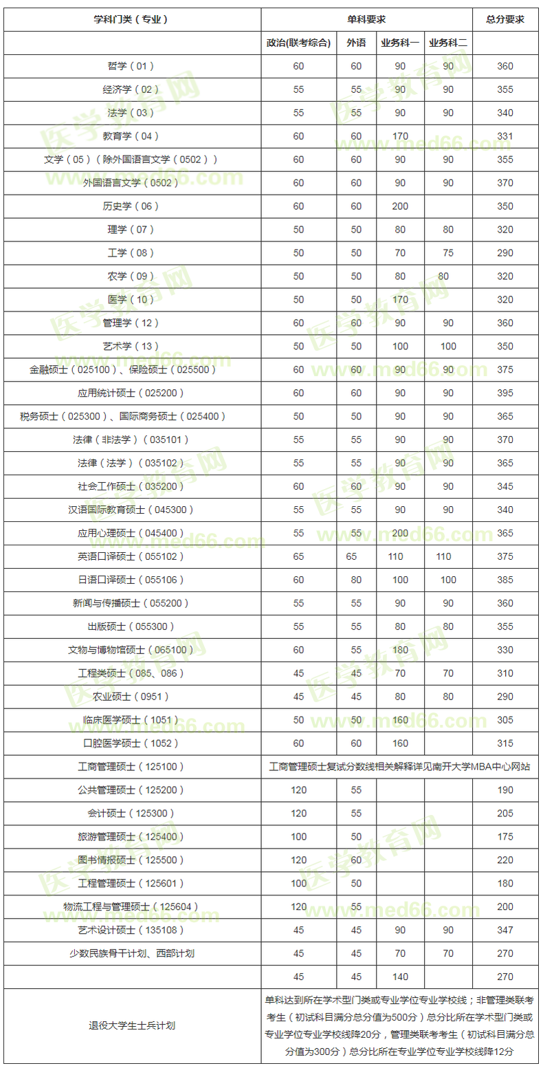 1.以上復(fù)試基本要求為我校統(tǒng)考、聯(lián)考生復(fù)試最低線。有關(guān)學(xué)院根據(jù)生源情況可在此基礎(chǔ)上上調(diào)部分或全部專業(yè)的單科或總分線,詳細(xì)情況請(qǐng)見(jiàn)南開(kāi)大學(xué)研招網(wǎng)。