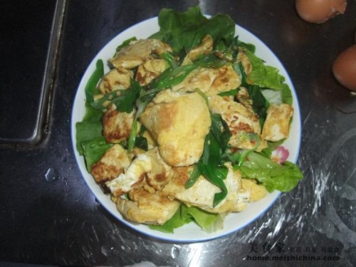 這道菜有一點(diǎn)干,所以用上生菜可以利口。