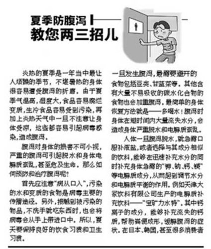 二、如果空調(diào)直接吹在腹部上,則會(huì)引起腹瀉。因此,立秋以后睡眠時(shí),既要保持空氣清新,也要謹(jǐn)防空調(diào)風(fēng)受涼。腹瀉病人由于大量的排便,導(dǎo)致身體嚴(yán)重缺水和電解質(zhì)紊亂,此時(shí)必須補(bǔ)充大量的水分,如含有電解質(zhì)的寶礦力水特等功能飲料,更容易被身體吸收,吸收速度比水快,能快速抵達(dá)身體各處,并能在體內(nèi)保留較長時(shí)間,柔和補(bǔ)充水分并維持電解質(zhì)平衡。