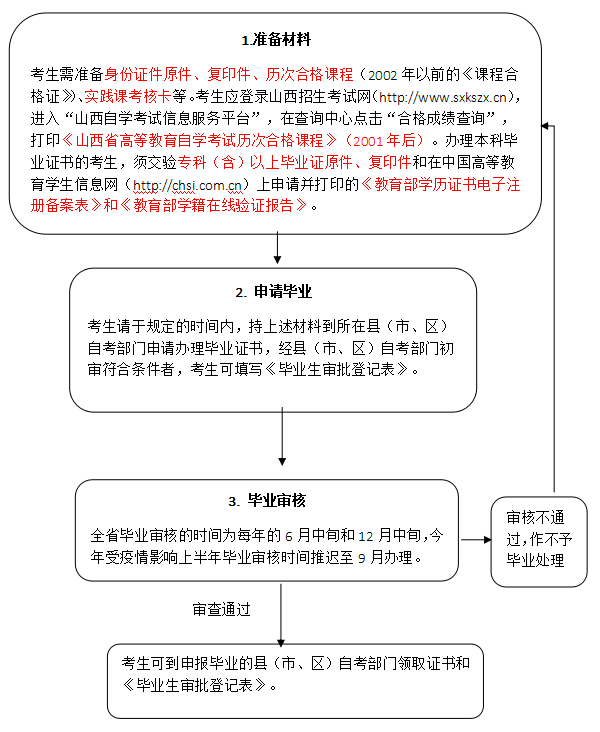 山西省2020年下半年高等教育自學考試申報畢業(yè)工作即將開始,具體工作流程及注意事項如下: