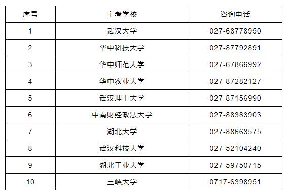 四、面向社會(huì)開考的主考學(xué)校及咨詢電話: