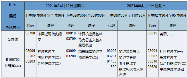 2021年4月湖南自考本科護(hù)理學(xué)專業(yè)課程安排表