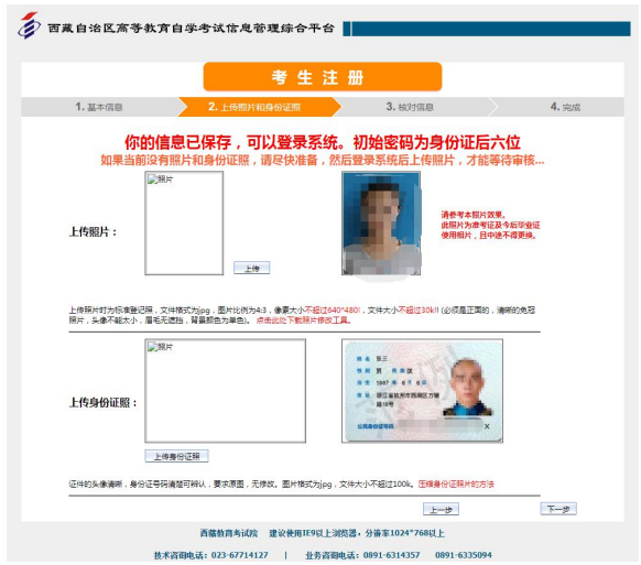 3、新生按照如下所示上傳個人照片和身份證,點擊“下一步”即可