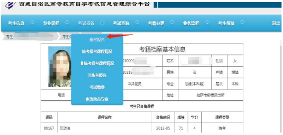 6、考生登錄系統(tǒng)后進入如下頁面,點擊考試報名里面的“統(tǒng)考報名”