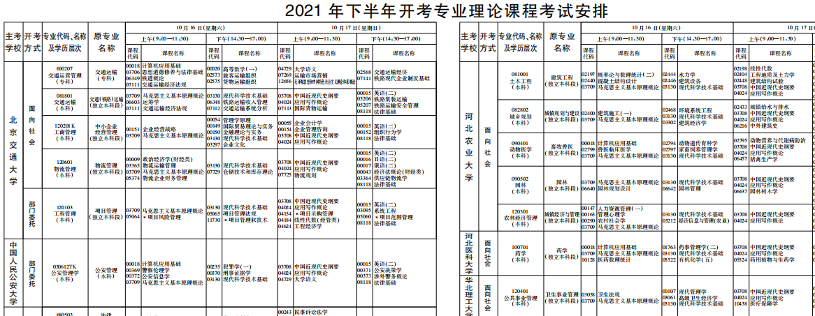 這個(gè)時(shí)候,同學(xué)們可以看看河北報(bào)考專(zhuān)業(yè)的專(zhuān)業(yè)計(jì)劃和10月份考試時(shí)間安排[下載2021年下半年河北省高等教育自學(xué)考試報(bào)考簡(jiǎn)章即可查看](如下圖所示),理論上來(lái)說(shuō),10月河北自考可以同時(shí)報(bào)考1-4門(mén),同學(xué)們可以根據(jù)自身的學(xué)習(xí)能力以及復(fù)習(xí)時(shí)間確定的要報(bào)考幾門(mén),提前開(kāi)始復(fù)習(xí)。