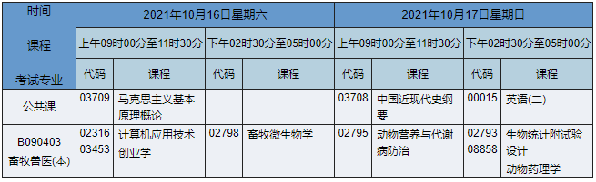 2021年10月湖南自考本科動物醫(yī)學(xué)(原畜牧獸醫(yī))專業(yè)課程安排表