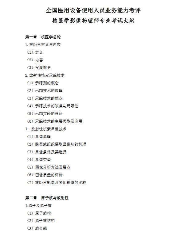 詳情請看附件:核醫(yī)學(xué)影像物理師專業(yè)考試大綱