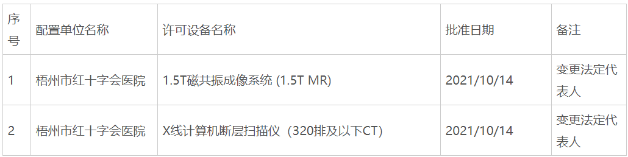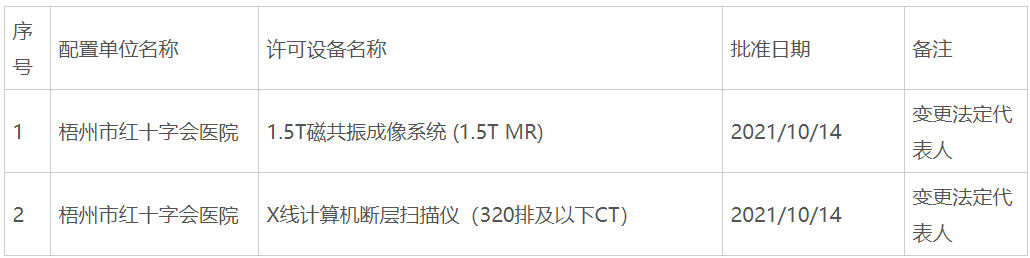 2021年10月11日-15日廣西衛(wèi)生健康委同意許可的乙類大型醫(yī)用設(shè)備