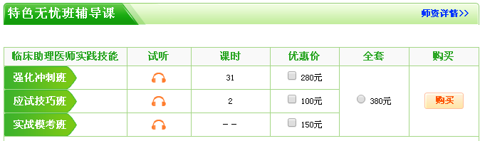 醫(yī)學教育網(wǎng)2017臨床助理醫(yī)師實踐技能特色無憂班輔導包含強化沖刺班、應試技巧班、實戰(zhàn)??及嗳蟀啻?。針對每個考生的不同學習狀況,進行有針對性地輔導。