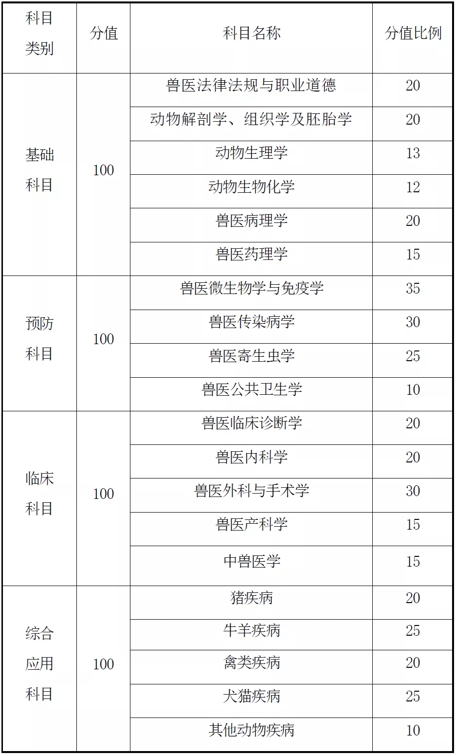 2020年執(zhí)業(yè)獸醫(yī)考試科目分值