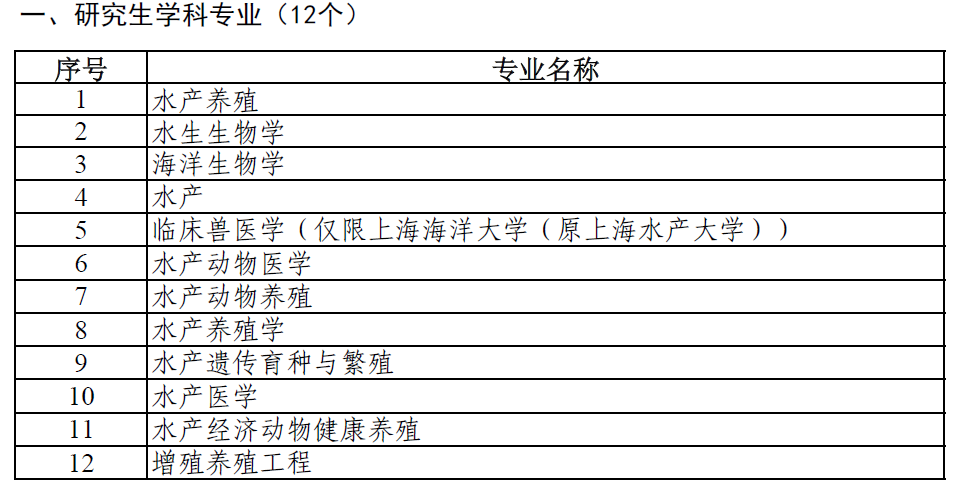 全國(guó)執(zhí)業(yè)獸醫(yī)資格考試報(bào)考專(zhuān)業(yè)目錄(水生動(dòng)物類(lèi))2019年版