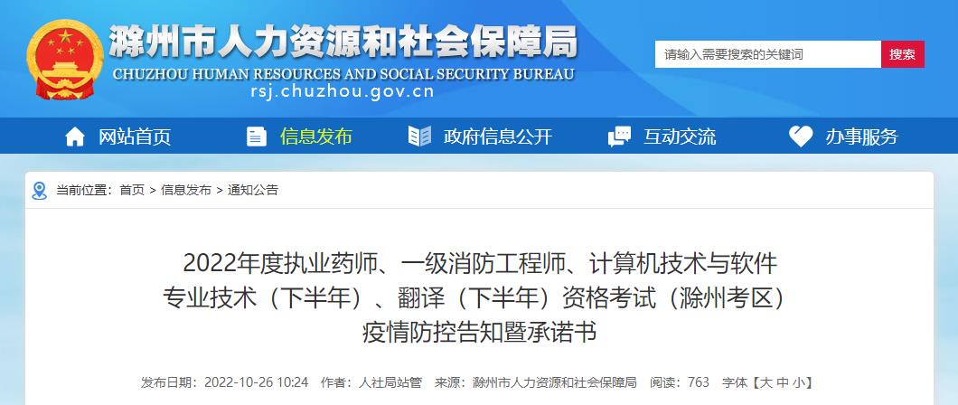 2022年度執(zhí)業(yè)藥師職業(yè)資格考試安徽滁州考區(qū)疫情防控告知書