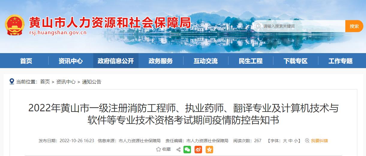 2022年黃山市一級注冊消防工程師、執(zhí)業(yè)藥師、翻譯專業(yè)及計算機技術(shù)與軟件等專業(yè)技術(shù)資格考試于11月5-6日進行(此次考試如因疫情等特殊因素影響需取消或暫停,將另行通知,請密切關(guān)注黃山市人力資源和社會保障局網(wǎng)站和安徽省人事考試網(wǎng))。為切實保障廣大應(yīng)試人員的生命安全和身體健康,確保此次考試安全有序進行,現(xiàn)將考試期間疫情防控相關(guān)事項告知如下,考生務(wù)必充分知曉并遵照執(zhí)行: