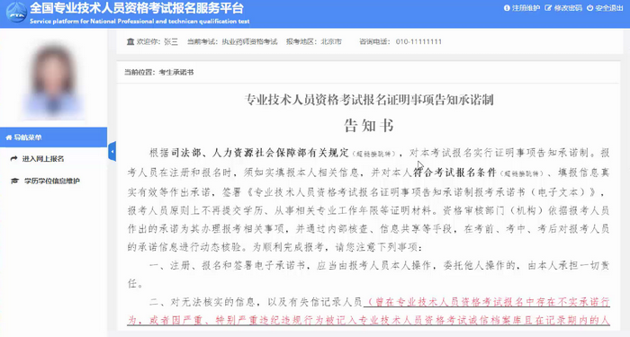 報(bào)考人員填報(bào)相關(guān)信息后,系統(tǒng)生成《專(zhuān)業(yè)技術(shù)人員資格考試報(bào)名證明事項(xiàng)告知承諾制報(bào)考承諾書(shū)》(電子文本),報(bào)考人員由本人簽署(提交)承諾書(shū),不允許代為承諾。