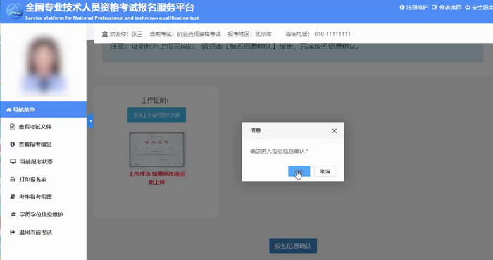 注意:報(bào)名期間,報(bào)考人員在未確認(rèn)報(bào)名信息前,可以點(diǎn)擊考試狀態(tài)流程中的“信息維護(hù)”對(duì)報(bào)名信息進(jìn)行修改。