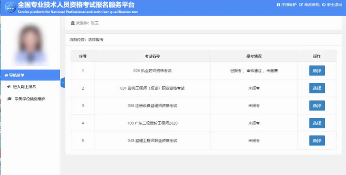 登錄網(wǎng)上報(bào)名系統(tǒng),選擇所報(bào)的專(zhuān)業(yè)技術(shù)人員資格考試名稱(chēng),進(jìn)入網(wǎng)上報(bào)名界面。選擇省(市)后,提示欄中將顯示報(bào)考人員姓名、報(bào)考考試名稱(chēng)、報(bào)考地區(qū)、繳費(fèi)方式和咨詢(xún)電話(huà)。