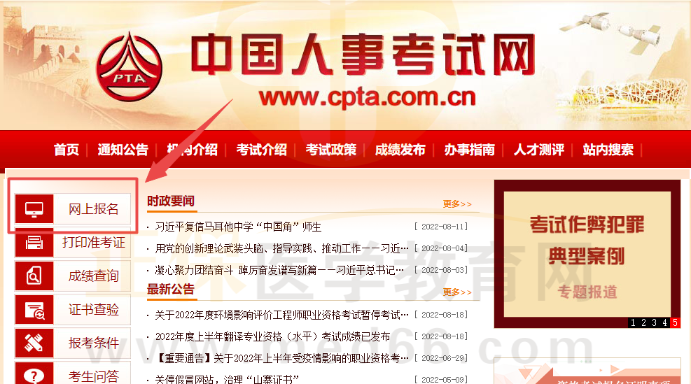 1,考生訪問中國(guó)人事考試網(wǎng),點(diǎn)擊【網(wǎng)上報(bào)名】進(jìn)入考生登入頁(yè)面。如圖: