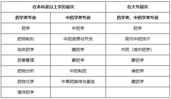 報考條件中要求的“藥學(xué)類、中藥學(xué)類專業(yè)”,按照國務(wù)院學(xué)位委員會、教育部印發(fā)的《學(xué)位授予和人才培養(yǎng)學(xué)科目錄設(shè)置與管理辦法》《普通高等學(xué)校高等職業(yè)教育(專科)專業(yè)設(shè)置管理辦法》和《學(xué)位授予和人才培養(yǎng)學(xué)科目錄》《普通高等學(xué)校本科專業(yè)目錄(2012年)》《普通高等學(xué)校高等職業(yè)教育(??疲I(yè)目錄(2015年)》等規(guī)定,對照學(xué)科目錄來界定。