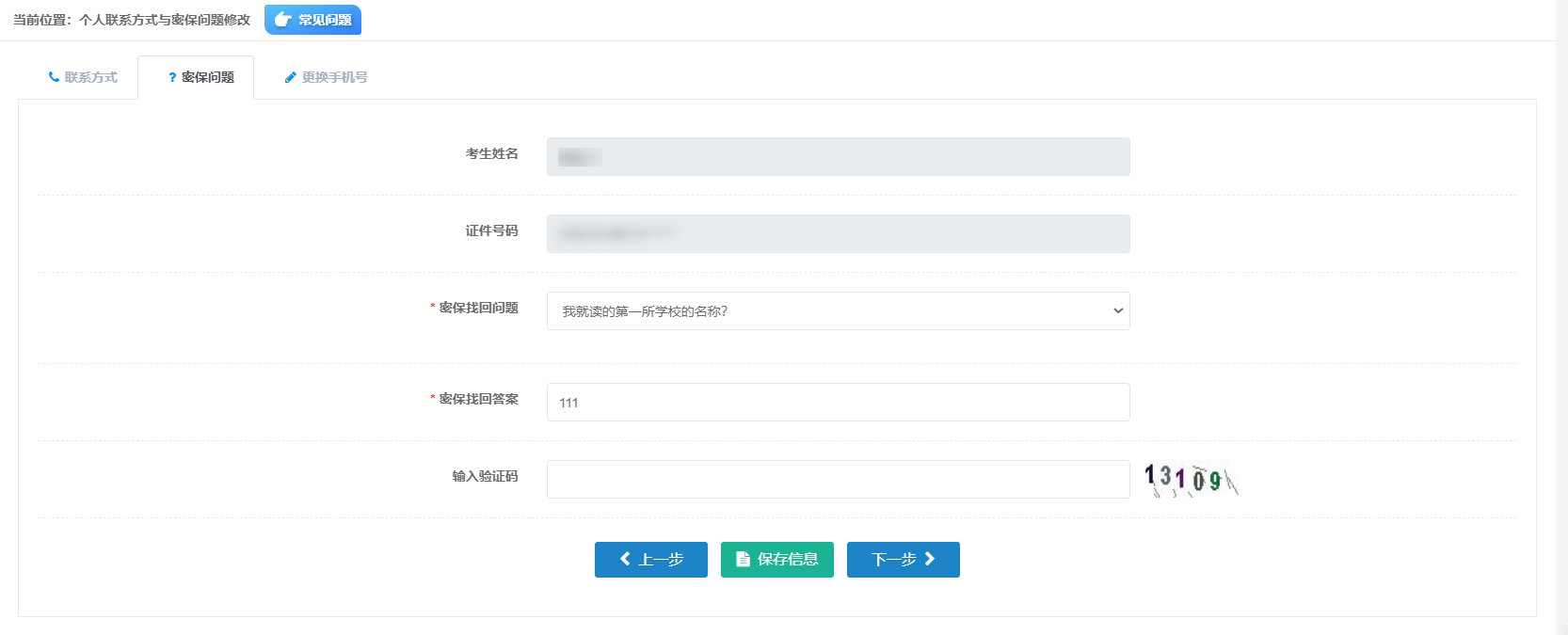 聯(lián)系方式及密保問題維護: