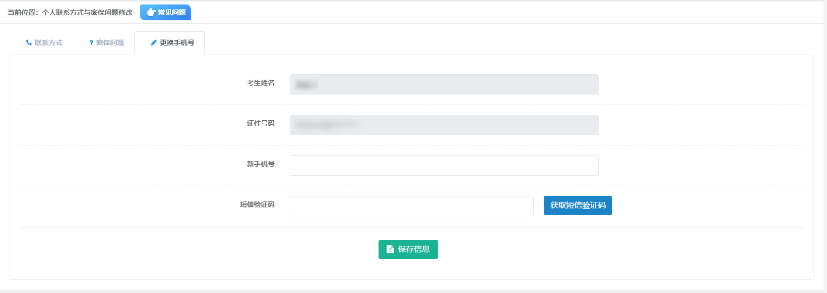在頁面中輸入新手機號,點擊【獲取短信驗證碼】按鈕,輸入新手機號接收到的短信驗證碼信息,點擊【保存信息】按鈕,完成修改手機操作。