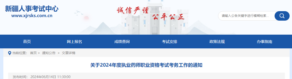 根據(jù)人力資源和社會(huì)保障部人事考試中心《關(guān)于2024年度執(zhí)業(yè)藥師職業(yè)資格考試考務(wù)工作的通知》(人考中心函〔2024〕29號(hào))要求,2024年度執(zhí)業(yè)藥師職業(yè)資格考試形式為電子化考試(機(jī)考),為做好考試考務(wù)工作,現(xiàn)將有關(guān)事項(xiàng)通知如下: