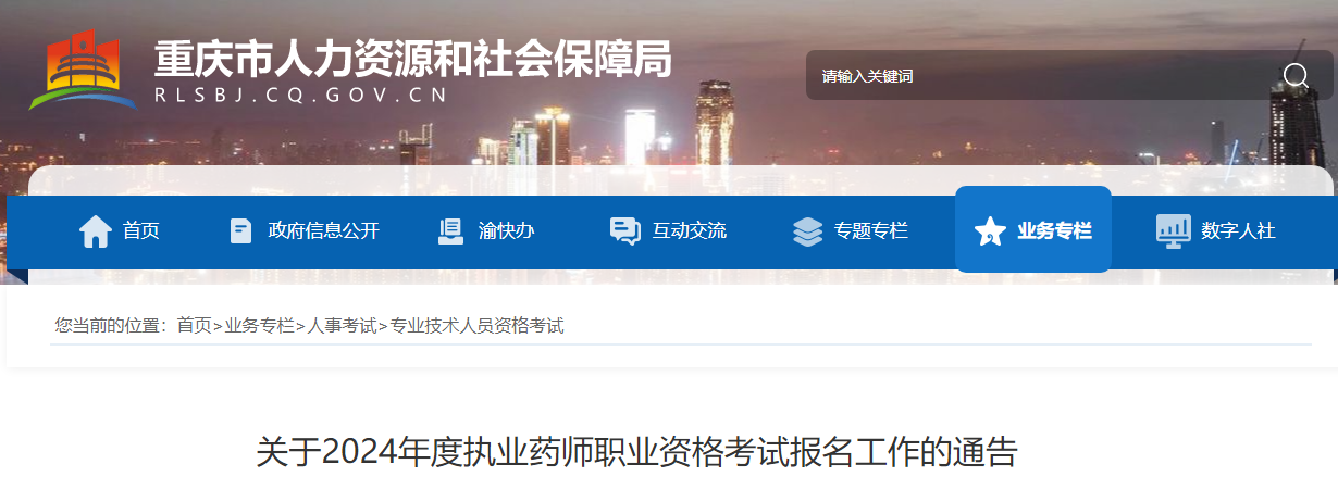根據(jù)人力資源和社會保障部人事考試中心《關于2024年度執(zhí)業(yè)藥師職業(yè)資格考試考務工作的通知》(人考中心函〔2024〕29號)規(guī)定和重慶市人事考試中心《關于做好2024年度執(zhí)業(yè)藥師職業(yè)資格考試考務工作的通知》(渝人考〔2024〕27號)的要求,為方便廣大考生報考,現(xiàn)將有關事項通告如下: