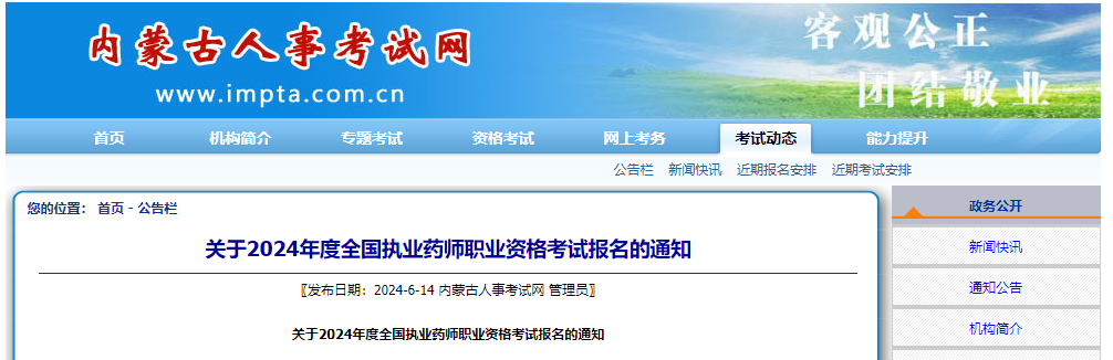 2024年度執(zhí)業(yè)藥師職業(yè)資格考試統(tǒng)一實(shí)行網(wǎng)上報(bào)名。