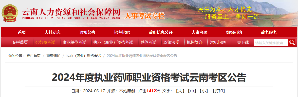 根據(jù)人力資源和社會(huì)保障部人事考試中心《關(guān)于2024年度執(zhí)業(yè)藥師職業(yè)資格考試考務(wù)工作的通知》(人考中心函〔2024〕29號)精神,現(xiàn)將云南考區(qū)有關(guān)事項(xiàng)公告如下: