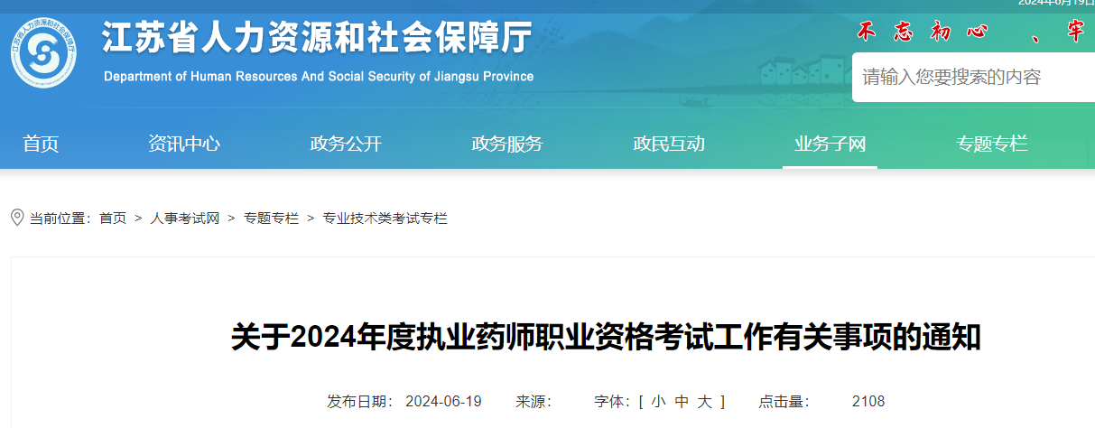 根據(jù)國(guó)家藥監(jiān)局 人力資源社會(huì)保障部《關(guān)于印發(fā)執(zhí)業(yè)藥師職業(yè)資格制度規(guī)定和執(zhí)業(yè)藥師職業(yè)資格考試實(shí)施辦法的通知》(國(guó)藥監(jiān)人〔2019〕12號(hào))和人力資源社會(huì)保障部人事考試中心《關(guān)于2024年度執(zhí)業(yè)藥師職業(yè)資格考試考務(wù)工作的通知》(人考中心函〔2024〕29號(hào))以及《省人力資源社會(huì)保障廳關(guān)于進(jìn)一步加強(qiáng)我省專業(yè)技術(shù)資格考試資格審查工作的通知》(蘇人社發(fā)〔2018〕383號(hào))文件精神,為做好我省2024年度執(zhí)業(yè)藥師職業(yè)資格考試考務(wù)工作,現(xiàn)將有關(guān)事項(xiàng)通知如下: