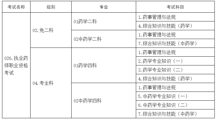 藥學(xué)類考試科目:“藥學(xué)專業(yè)知識(一)”“藥學(xué)專業(yè)知識(二)”“藥事管理與法規(guī)”“藥學(xué)綜合知識與技能”。