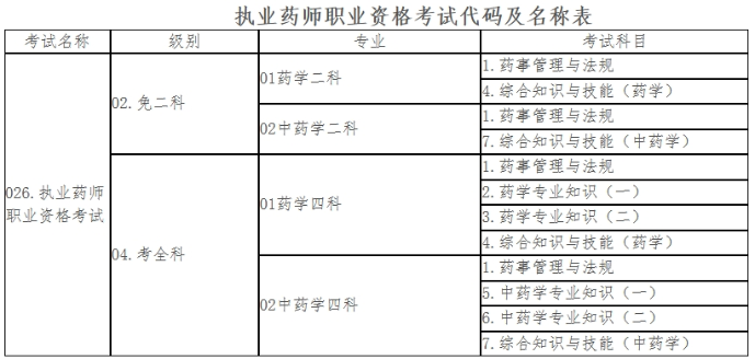 2.執(zhí)業(yè)藥師職業(yè)資格考試代碼及名稱表