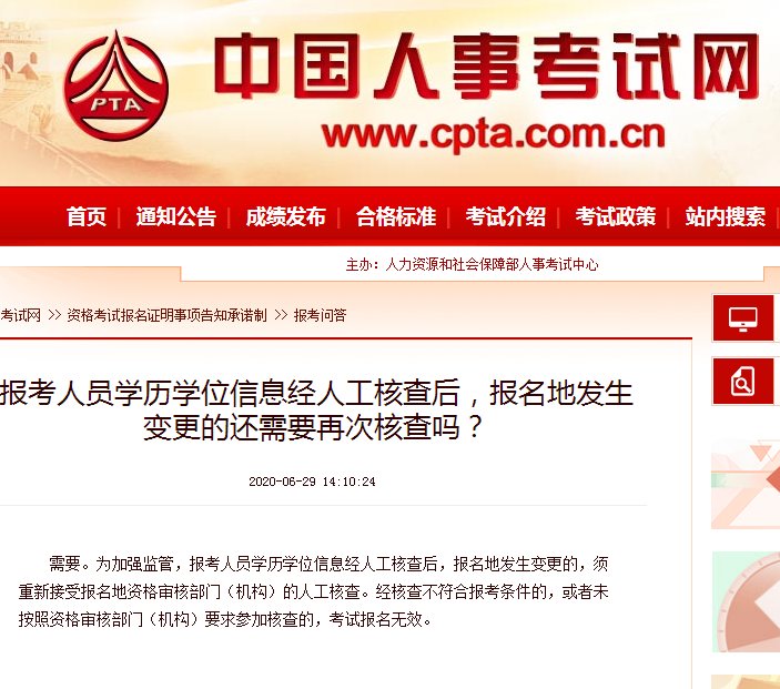 需要。為加強(qiáng)監(jiān)管,報(bào)考人員學(xué)歷學(xué)位信息經(jīng)人工核查后,報(bào)名地發(fā)生變更的,須重新接受報(bào)名地資格審核部門(機(jī)構(gòu))的人工核查。經(jīng)核查不符合報(bào)考條件的,或者未按照資格審核部門(機(jī)構(gòu))要求參加核查的,考試報(bào)名無效。