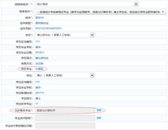④報考全科時,輸入學(xué)位和專業(yè)工作年限應(yīng)符合報考條件要求
