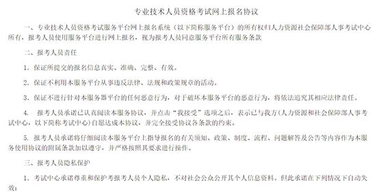 閱讀專(zhuān)業(yè)技術(shù)人員資格考試網(wǎng)上報(bào)名協(xié)議,并點(diǎn)擊【接受】按鈕,此時(shí)進(jìn)入注冊(cè)須知頁(yè)面,如圖。