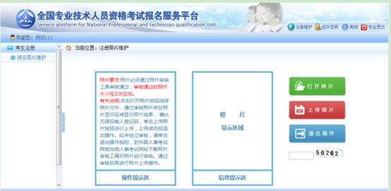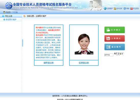 進(jìn)入照片維護(hù)頁(yè)面,點(diǎn)擊【打開(kāi)照片】按鈕,選擇經(jīng)過(guò)【照片審核】工具處理過(guò)的照片,照片會(huì)顯示在信息提示區(qū),輸入驗(yàn)證碼,點(diǎn)擊【上傳照片】按鈕,彈出提示框,選擇【確定】按鈕,照片上傳成功(見(jiàn)下圖)。