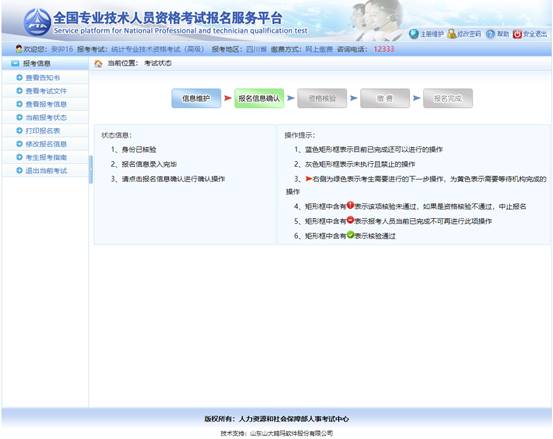 界面左側(cè)顯示狀態(tài)信息,右側(cè)顯示操作提示,請(qǐng)報(bào)考人員參考上述信息進(jìn)行相關(guān)操作,直到報(bào)名完成。