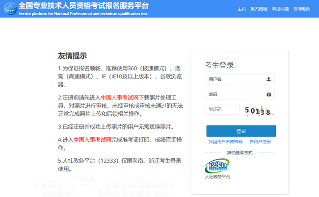 (1)報考專業(yè)技術(shù)人員資格考試的人員,必須先進(jìn)行注冊,注冊后才能進(jìn)行報名操作;