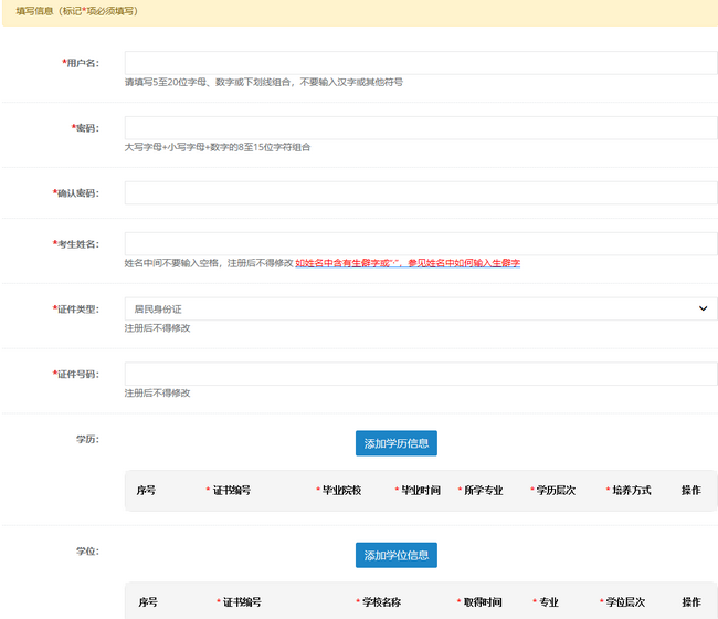 (3)學(xué)位信息最多可填寫5條信息,無學(xué)位信息可不填寫。