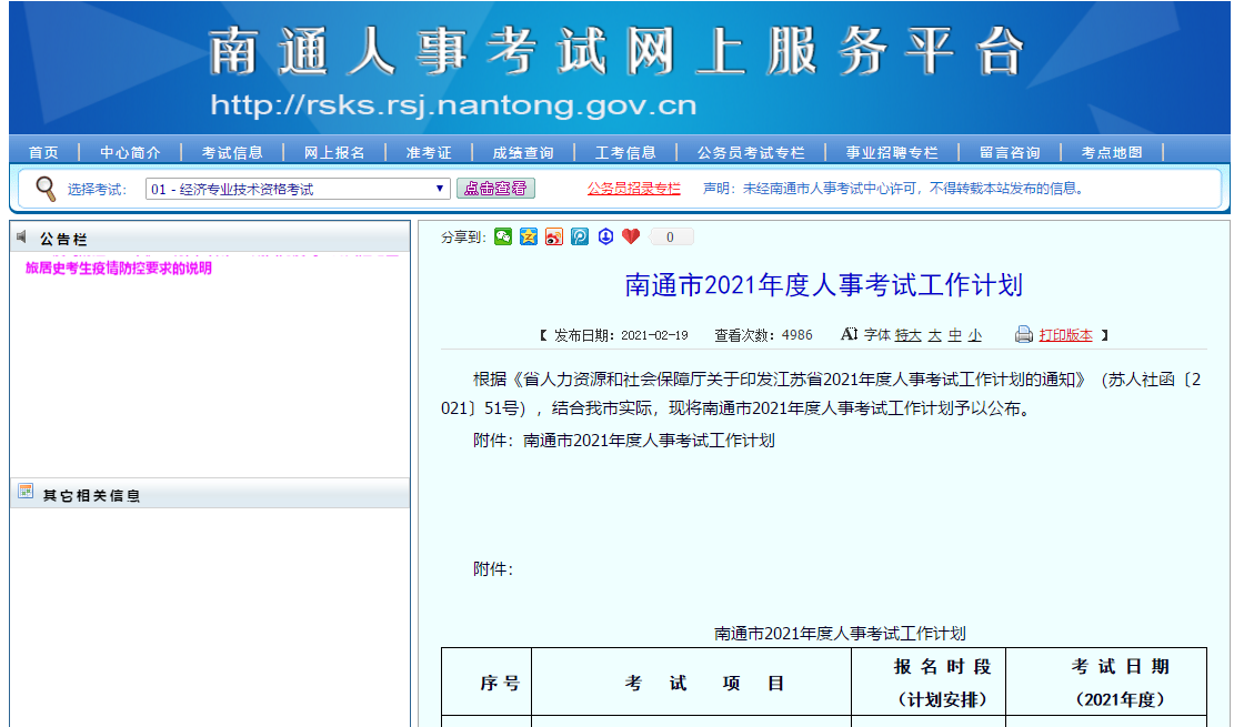根據(jù)《省人力資源和社會保障廳關于印發(fā)江蘇省2021年度人事考試工作計劃的通知》(蘇人社函〔2021〕51號),結合我市實際,現(xiàn)將南通市2021年度人事考試工作計劃予以公布。