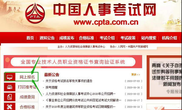 (1)登錄“中國(guó)人事考試網(wǎng)”并點(diǎn)擊左側(cè)“網(wǎng)上報(bào)名”一欄;