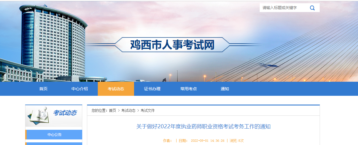 黑龍江雞西2022年度執(zhí)業(yè)藥師職業(yè)資格考試考務(wù)工作通知