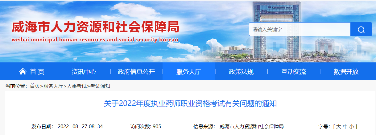 山東威海2022年度執(zhí)業(yè)藥師職業(yè)資格考試公告