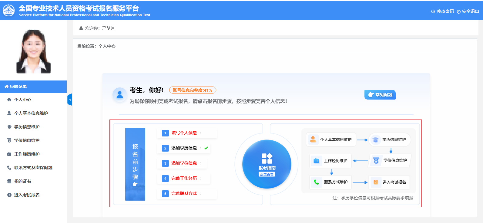 三、登錄之后,進(jìn)入到信息維護(hù)頁面,補(bǔ)充完善個(gè)人信息即可。
